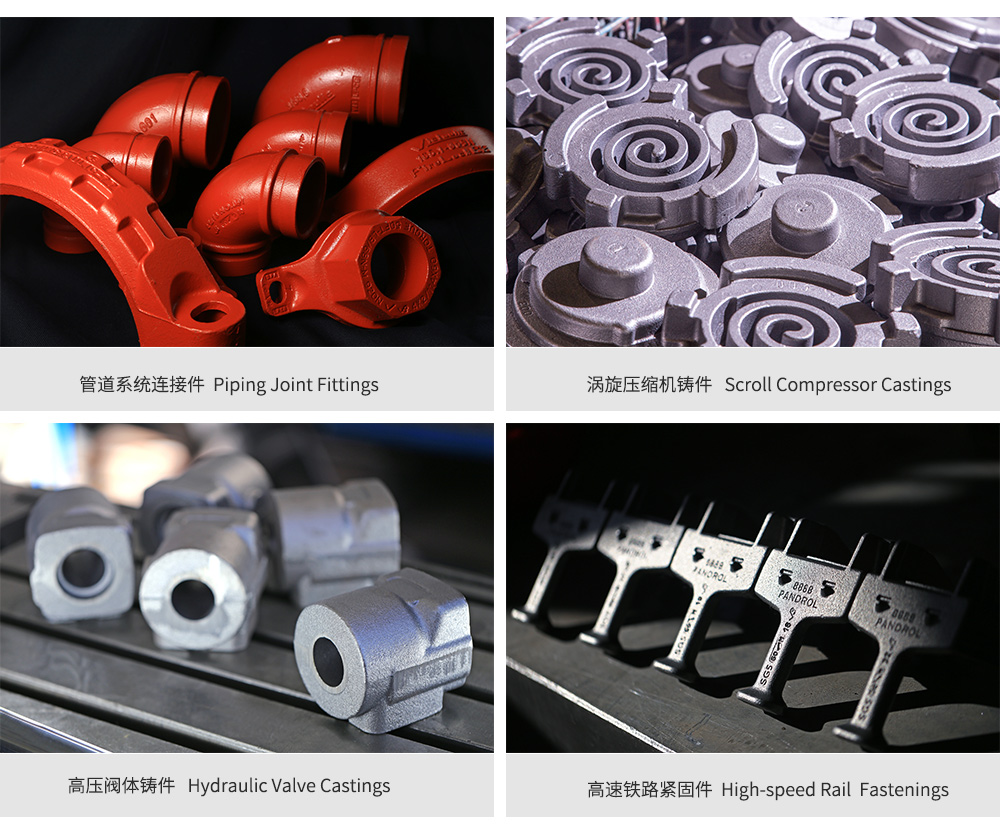 公司年銷售零部件40,000噸以上,產品主要有唯特利管道系統連接件、為松下配套渦旋壓縮機鑄件、快速鐵路項目的緊固件產品、應用于工程機械的液壓閥體鑄件等。產品銷往全球40多個國家和地區。